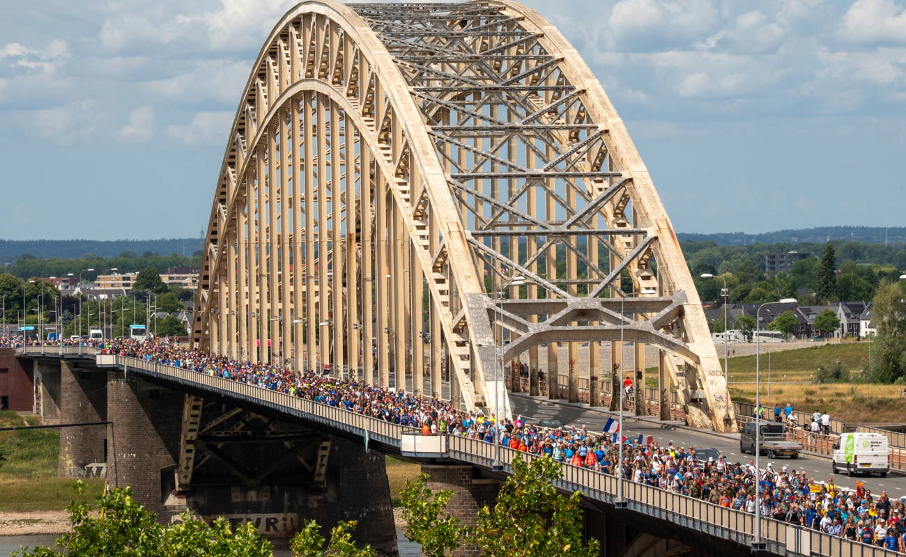 De derde dinsdag van juli lopen we samen de 4Daagse, de grootste wandelprestatietocht ter wereld! Meer dan 45.000 deelnemers, met meer dan 70 verschillende nationaliteiten, van 11 jaar tot 90+, komen elk jaar naar Nijmegen om vier dagen 30, 40 of 50 kilometer te wandelen in de Waalstad en haar prachtige, bosrijke omgeving. Allemaal met hetzelfde doel: het felbegeerde 4Daagsekruisje.
