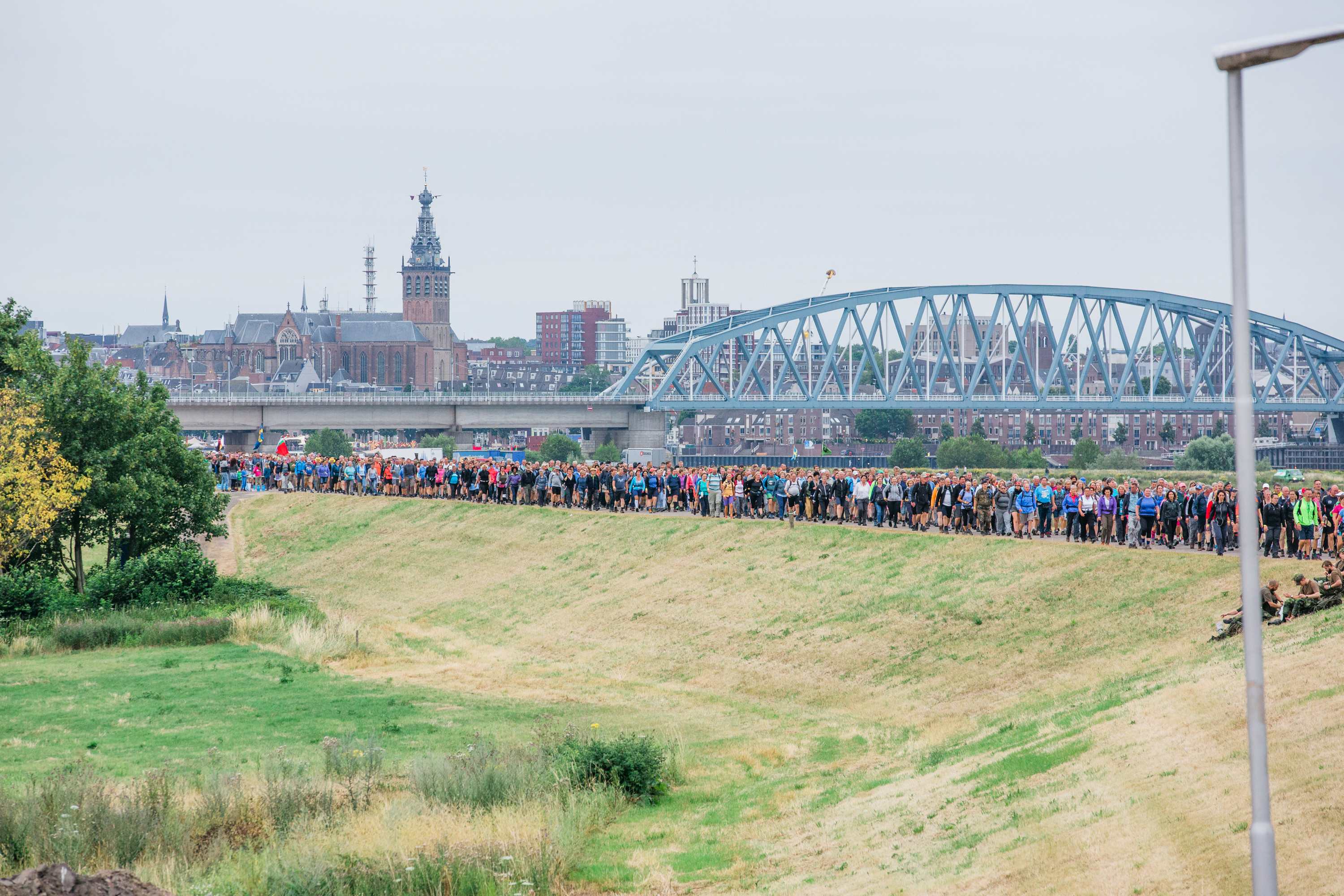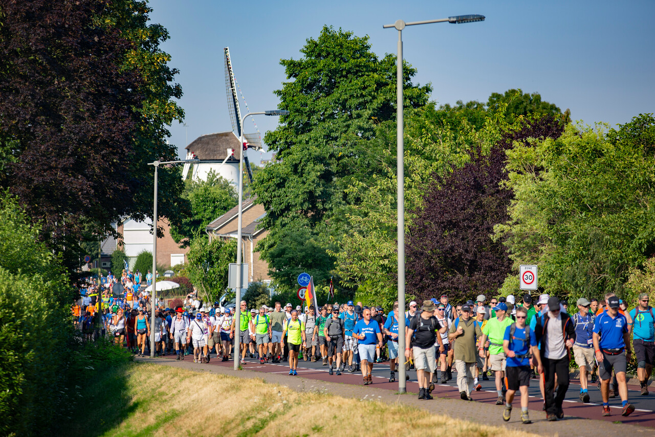 Of je het makkelijk of zwaar vond deze eerste wandeldag, eenmaal terug op de Wedren mag je trots zijn. Je hebt het gehaald! Nu nog even afmelden en je controlekaart voor de volgende dag halen. Gedaan? Sluit aan bij een van de lange tafels, geniet van een (alcoholvrij) biertje, dein mee met een dweilorkest en dans op livemuziek vanaf het podium. Vergeet niet om je heen te kijken. Wat een sfeer!